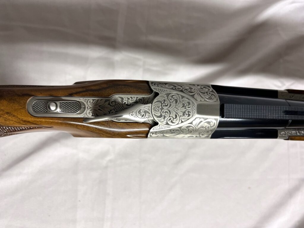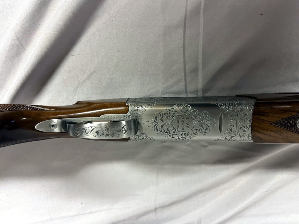 Right handed K-80 #3 Sporting stock with Krieghoff adjustable comb. K-80 32" Sporting barrels with 10-6mm rib and Krieghoff titanium chokes. Engraved and signed by Christina Carl.
