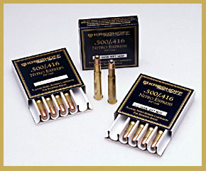 Krieghoff's goal is the perfect combination of gun and cartridge. So in conjunction with German specialists in big bore ammunition, we have developed a new flanged cartridge - The .500/.416 NITRO EXPRESS (3 1/4").